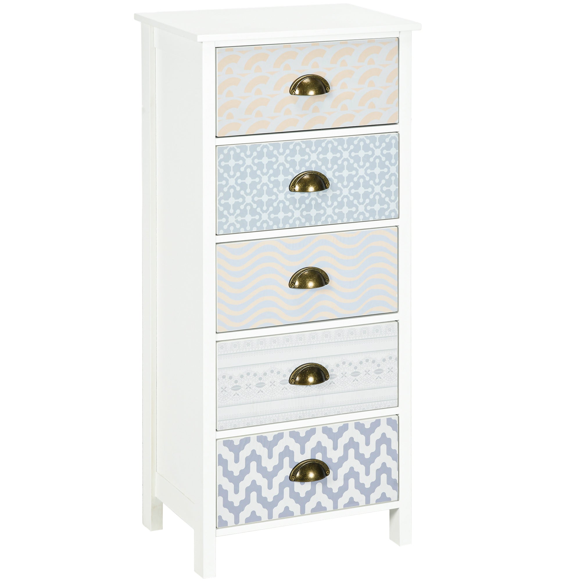 Add unique character to anywhere you want - do it with this HOMCOM tallboy drawer unit. It comes with five drawers, making it easy to storage and organise clothes, books, accessories and beyond. Each drawer is a different colour - neutral tones make it an adaptable piece to blend with other colours. Made from MDF for a strong structure, formed into a tallboy shape, making it suitable for smaller spots. Completed with metal handles to open/close each drawer easily.