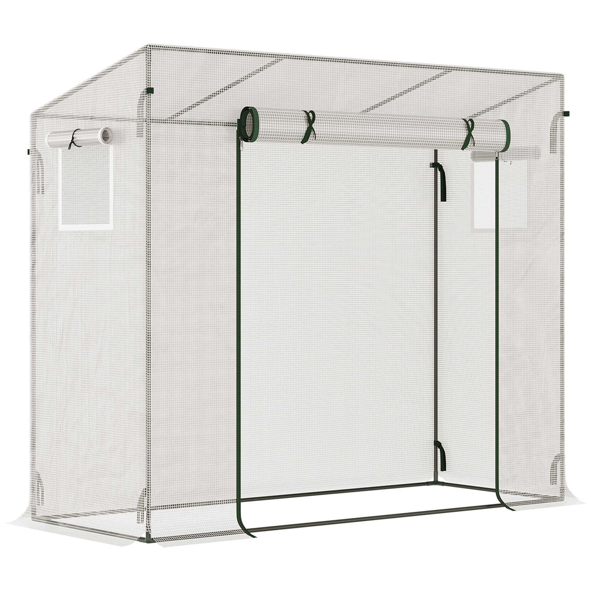 Whether it's early Spring or late Autumn, you'll be sure to grow plants, vegetables and more to their best, wherever - get this portable greenhouse from Outsunny. It comes with a steel frame for a steady core, with accessories included for extra stability. The plastic coat creates a protective shell, holding in the heat and shielding from wind and rain. Features a roll-up door to enter and leave to access your plants at any time. Simply put up, go and grow.