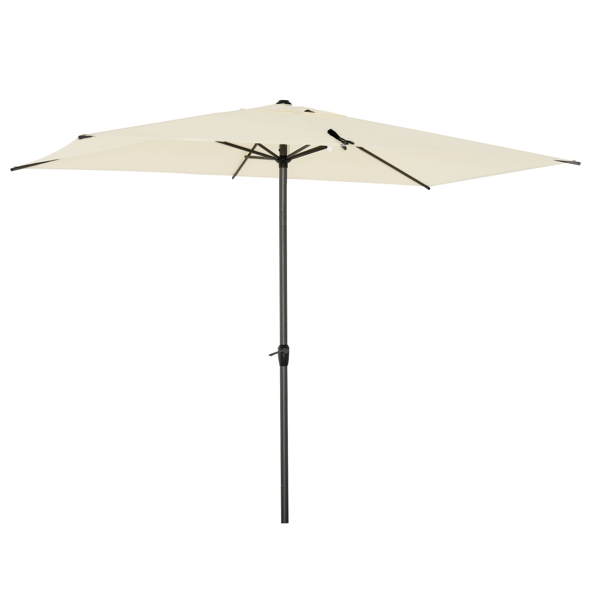Protect yourself from the sun in simple style with this outdoor parasol from Outsunny. The pole is made from aluminium, so it's durable and tough. The 180g/㎡ polyester patio parasol canopy will protect you outdoors; you can also adjust the angle at the touch of the operation button. The canopy and frame are connected with six metal ribs for extra strength and support. The perfect blend of beauty and function.