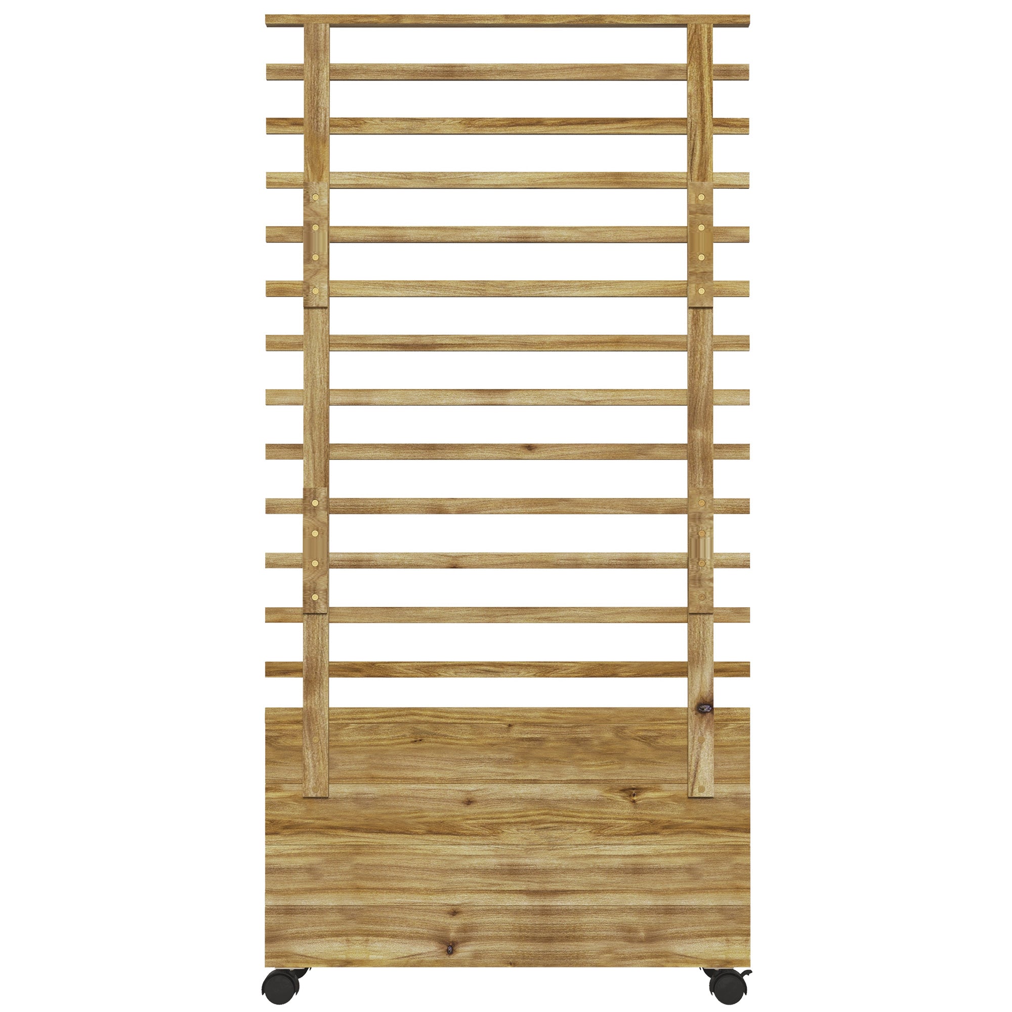 Give plants a beautiful place to grow and flourish, thanks to this Outsunny raised garden bed. A duo design, combining a planter box and back trellis; use the box for flowers, vegetables and plants - the planter with trellis is ideal for growing plants and vines. Made from fir wood, the structure is strong and coated in varnish for gentle protection outdoors. Wooden planter is complete with four wheels to roll around easily.